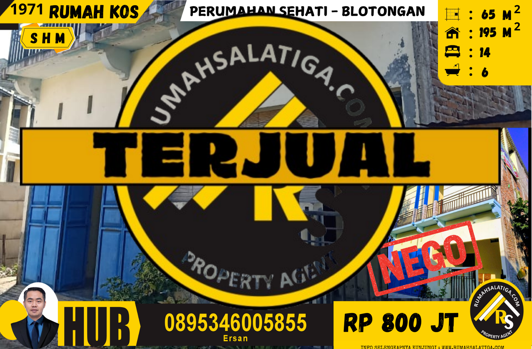 #1971 | 800jt | LT: 65m² LB: 195m² | Jual Rumah Kos di Salatiga | Perumahan Sehati – Blotongan